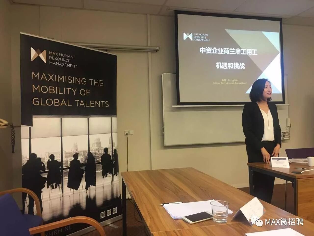座谈会由北布拉邦省经济发展署中国部项目经理俞丽娜宣布正式开始,紧接着由力马人力资源专家牛聪为企业代表们介绍了雇佣员工的相关流程,荷兰的劳工政策,应聘和解聘的技巧等常见人力资源问题,同时牛聪也提出了员工敬业度和千禧员工这两个新型概念的特点等。
